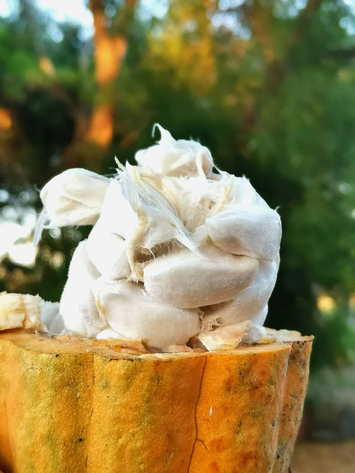Después de la cosecha, las mazorcas se abren cuidadosamente para revelar las semillas de cacao y la pulpa que las rodea. La pulpa, que tiene un sabor dulce y jugoso, es un elemento clave en la fermentación y desarrollo del sabor del cacao.